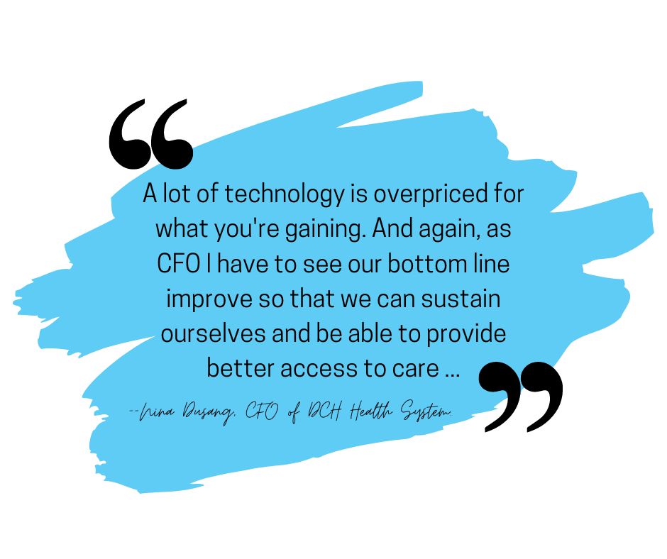 "A lot of technology is overpriced for what you're gaining. And again, as CFO I have to see our bottom line improve so that we can sustain ourselves and be able to provide better access to care, more care for more people, kept here locally," Dusang said.