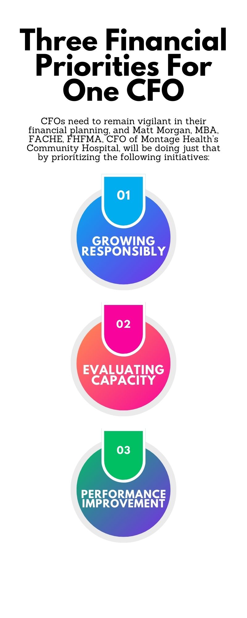 CFOs need to remain vigilant in their financial planning, and Matt Morgan, MBA, FACHE, FHFMA, CFO of Montage Health’s Community Hospital, will be doing this by prioritizing three key items for his hospital.
