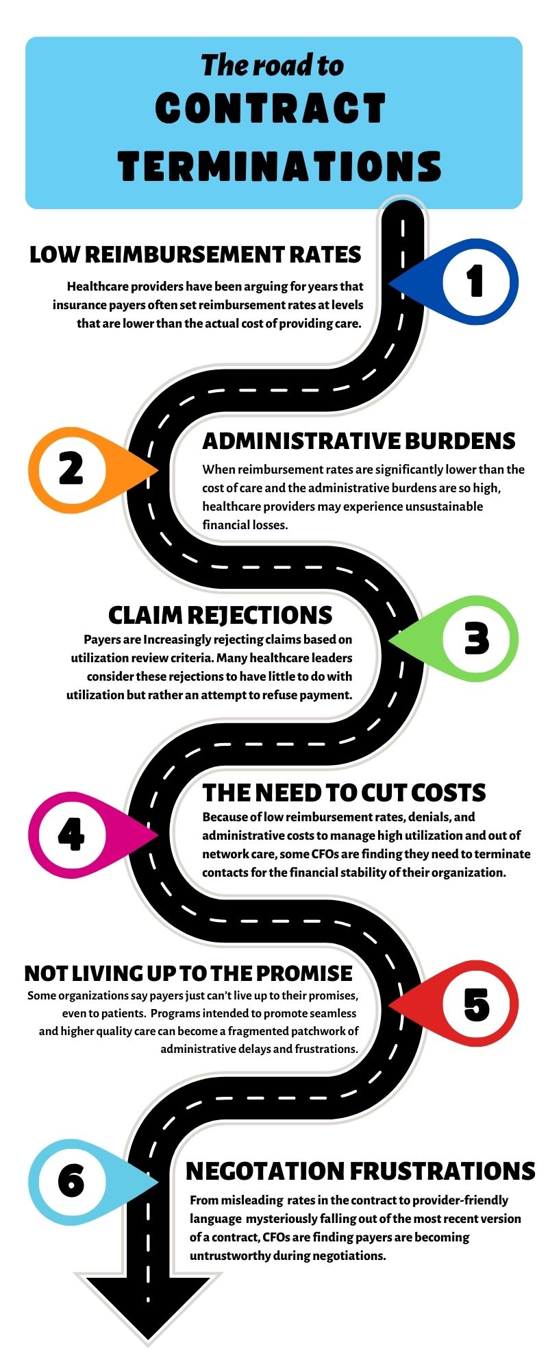 More organizations are now considering contract terminations due to dissatisfaction with reimbursement rates and overall bad payer behavior.