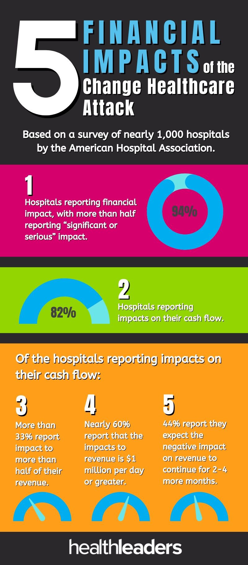 Here’s a look at five numbers that illustrate the financial impact of the attack, based on survey responses from nearly 1,000 hospitals collected by the American Hospital Association: