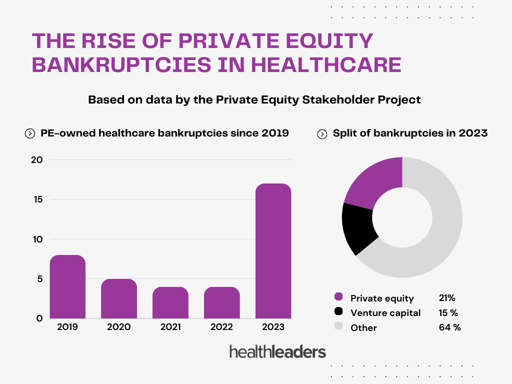 According to research by the Private Equity Stakeholder Project, 17 of the estimated 80 healthcare bankruptcies in 2023 involved companies backed by private equity firms.
