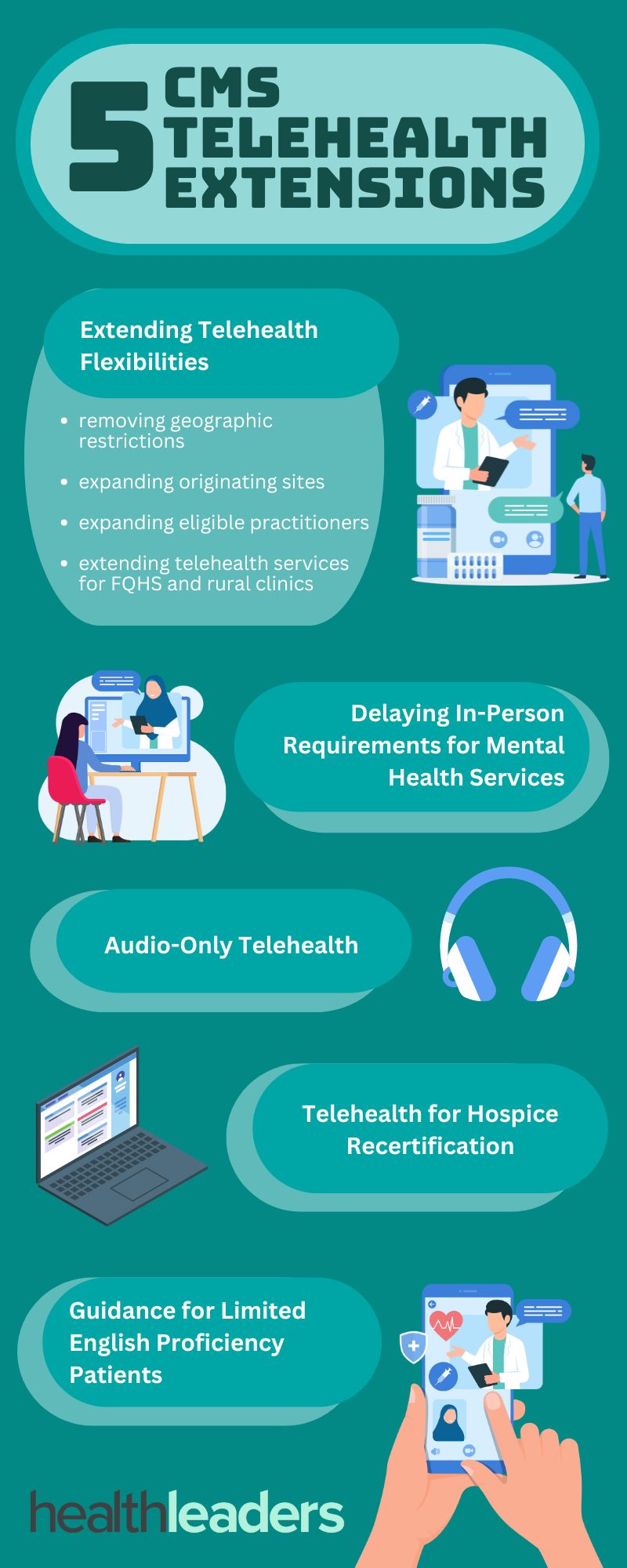 A few policies in this bill include: allowing Medicare patients to continue to receive telehealth services in their home, no geographic restrictions for originating sites for telehealth services, and allowing the use of audio-only communication platforms.